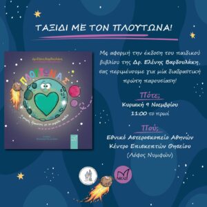 Δράση για παιδιά -Παρουσίαση βιβλίου: « Πλούτωνας. Ο μικρός πλανήτης με τη μεγάλη καρδιά», συγγραφέας: Δρ Ελ. Βαρδουλάκη, ώρα 11:00 πμ