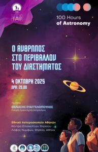 Σάββατο 4/10/2025, ώρα 20:00, στον κήπο του Εθνικού Αστεροσκοπείου στο Θησείο